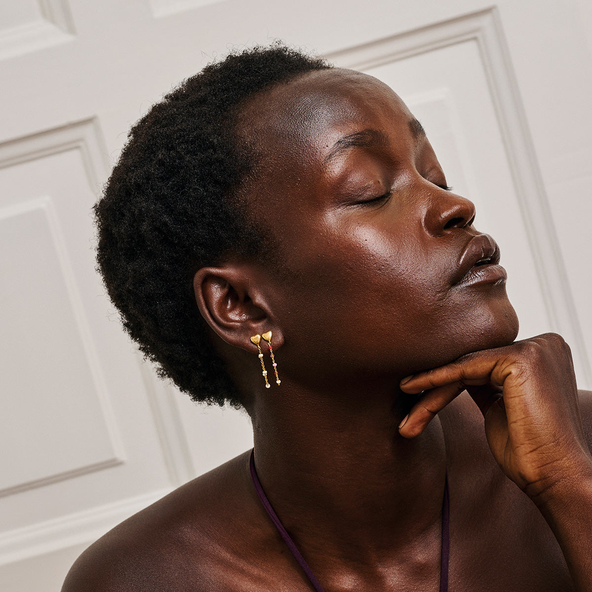 About the jewelry:The hand-painted enamel beads dance lightly down the chain and come here in a beautiful beige shade, providing a calm, natural, and sophisticated expression. The heart at the top adds a warm and feminine touch, making this earring truly special. Perfect for those who love classics with a touch of simplicity and elegance. Wear it alone as a quiet statement - or with your other Lola favorites for a balanced and personal look.