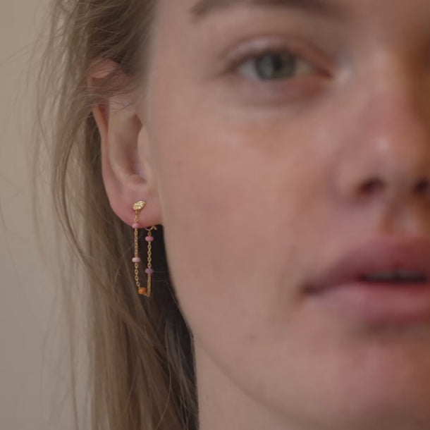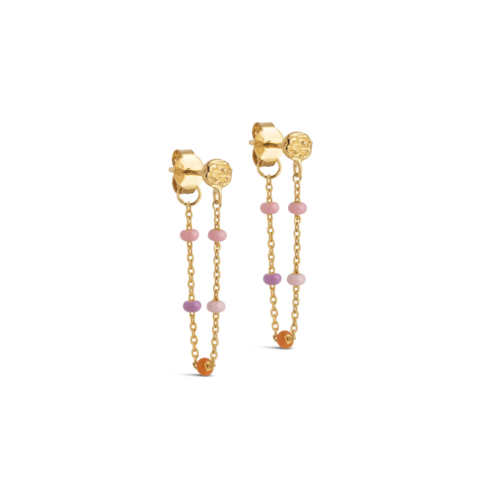 Lola Blush consists of three feminine colors, which with their soft, inviting shades, make every outfit sweet and playful. Lola Earrings are a delicate chain with small colored enamels. The earring provides a nice detail and can be perfectly combined with both large and small earrings. Available in several colors. Attention: Be sure NOT to wear our Lola styles in the shower, when you sleep, and too close to perfumes and creams, as the enamel may change color and structure.
