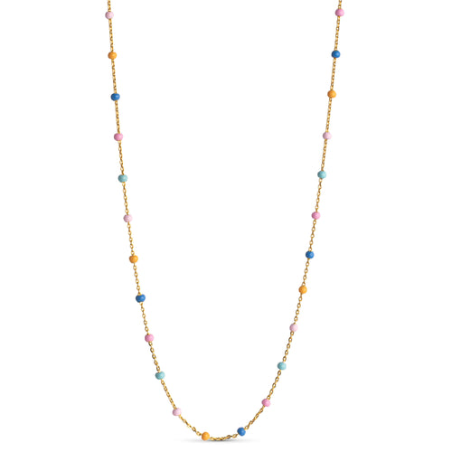 Bring glæde og livlighed til din stil med lolly øreringe i en kombination af orange, lyserøde og blå nuancer. De farverige emaljekugler på kæden tilføjer en legende og ungdommelig stemning til dit outfit, der passer perfekt til alle begivenheder.