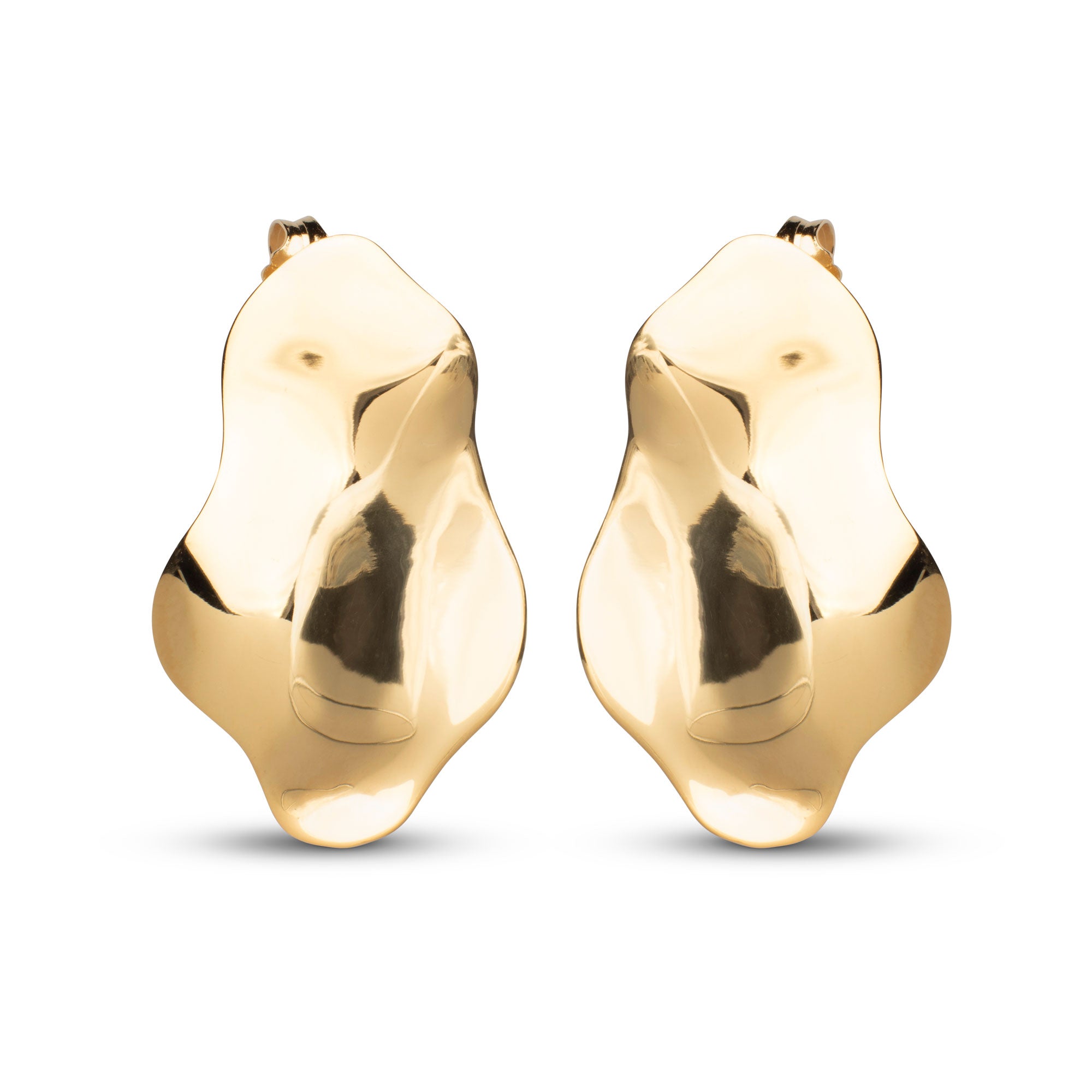 About the jewelry:The Cleopatra earrings in 925 sterling silver, plated with 18 karat gold, are a pair of giant studs that beautifully undulate and shine like a decorative, indescribable ocean surface. The Cleopatra in gold will transport you back to the ancient Egyptian empire, with their oversized, luxurious embellishments. The Cleopatra earrings are also available in silver.