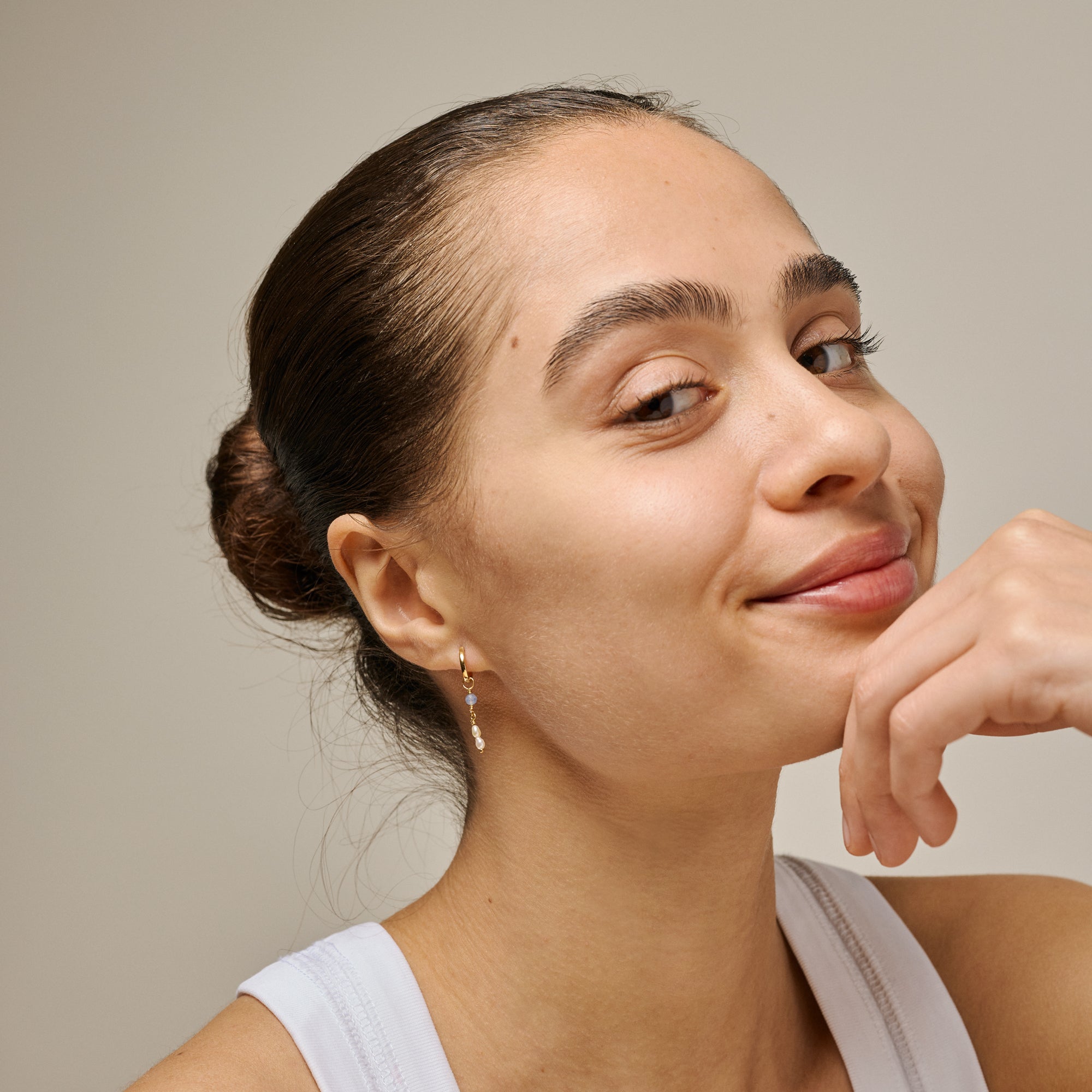 About the jewellery:The Liva hoop in the Blue Quartz color shines beautifully like a sunlit ocean surface. The stone has small, natural imperfections that give the earring dynamism and charm.