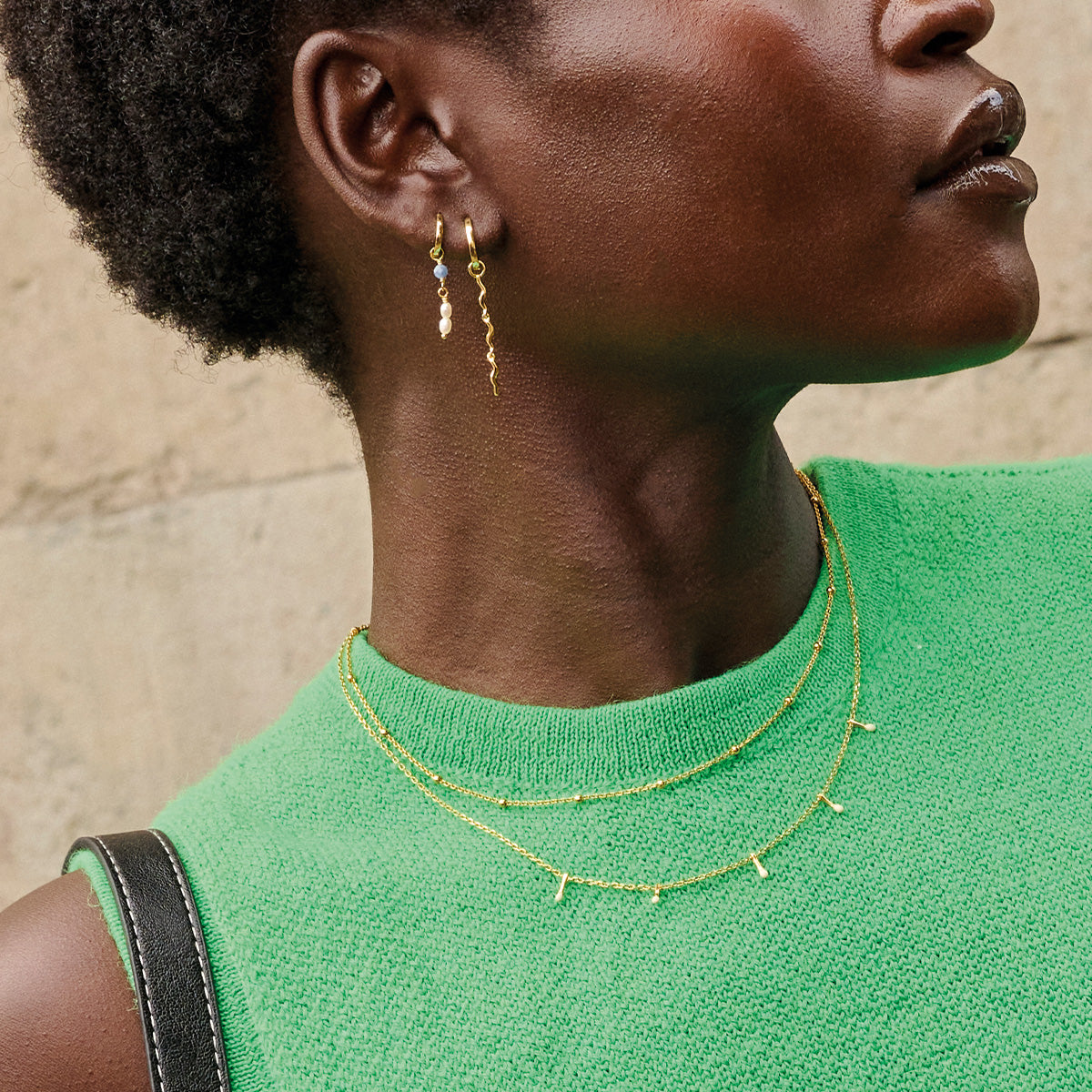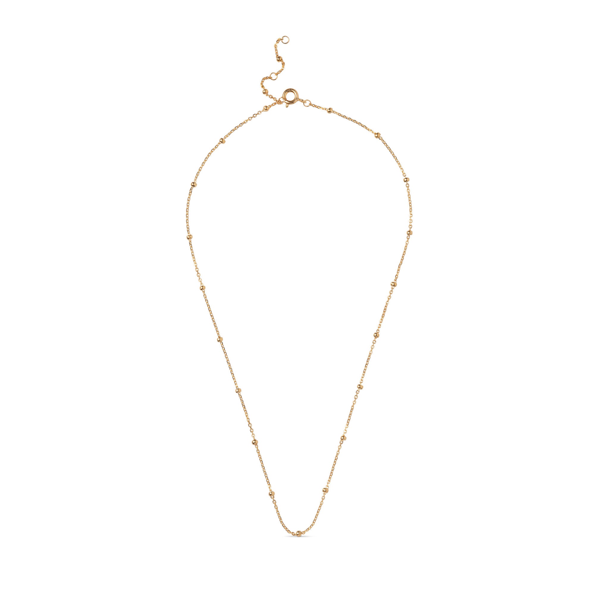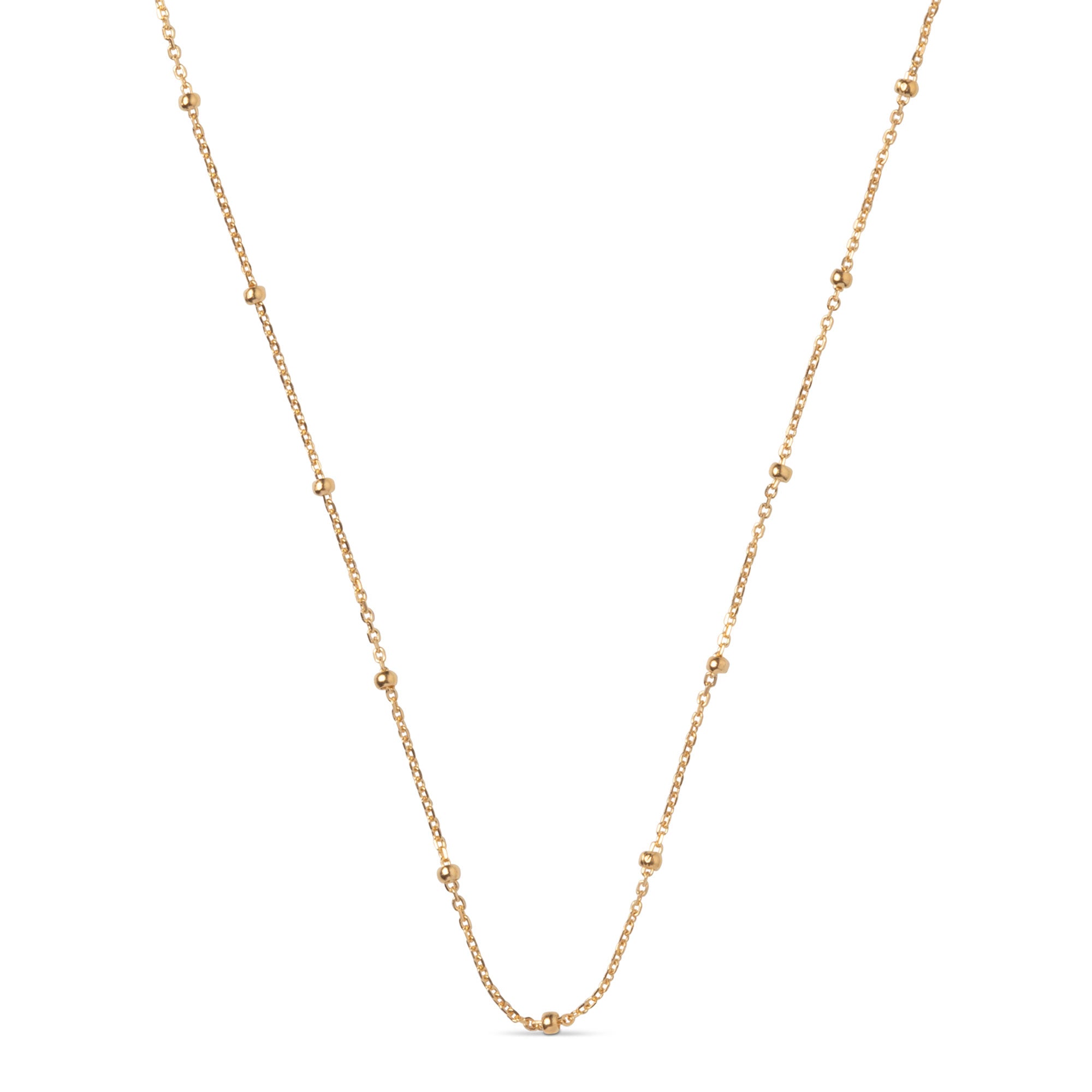 About the jewelry: The Beaded Chain Necklace is a nice chain with small gold beads that create a light and sophisticated expression. The simple design makes it a versatile everyday favorite - beautiful on its own and elegant in combination with other chains. The beads add a discreet detail that gives the chain its special character. There is also a matching bracelet in the same design, as well as a version in silver.