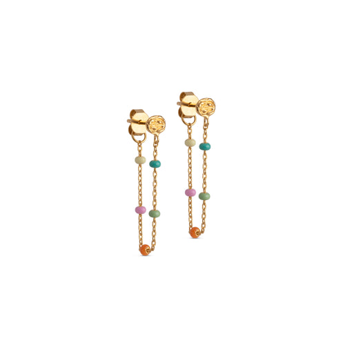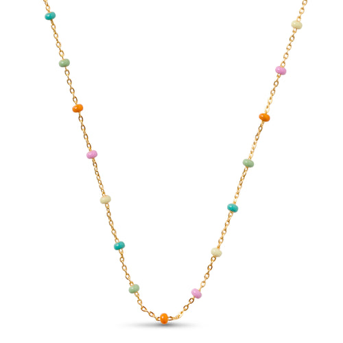 The Summer color combination consists of enamel colors, all associated with summer and warm days. A beautiful grass green color, a delicate sun yellow color, a warm orange, a rose-pink, and a dusty green. The Summer color combination consists of enamel colors, all associated with summer and warm days. A beautiful grass green color, a delicate sun yellow color, a warm orange, a rose-pink, and a dusty green. The Lola necklace is a delicate chain with small enamels. The necklace provides a nice detail and can be perfectly combined with other necklaces. Available in several colors. Note: Be careful NOT to wear our Lola styles in the bath, while sleeping, and too close to perfumes and creams, as the enamel may change color and texture.