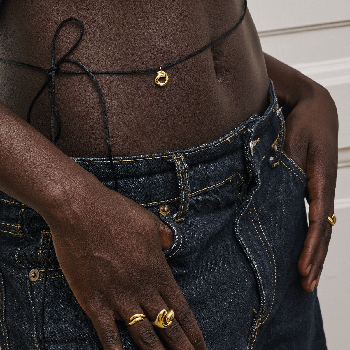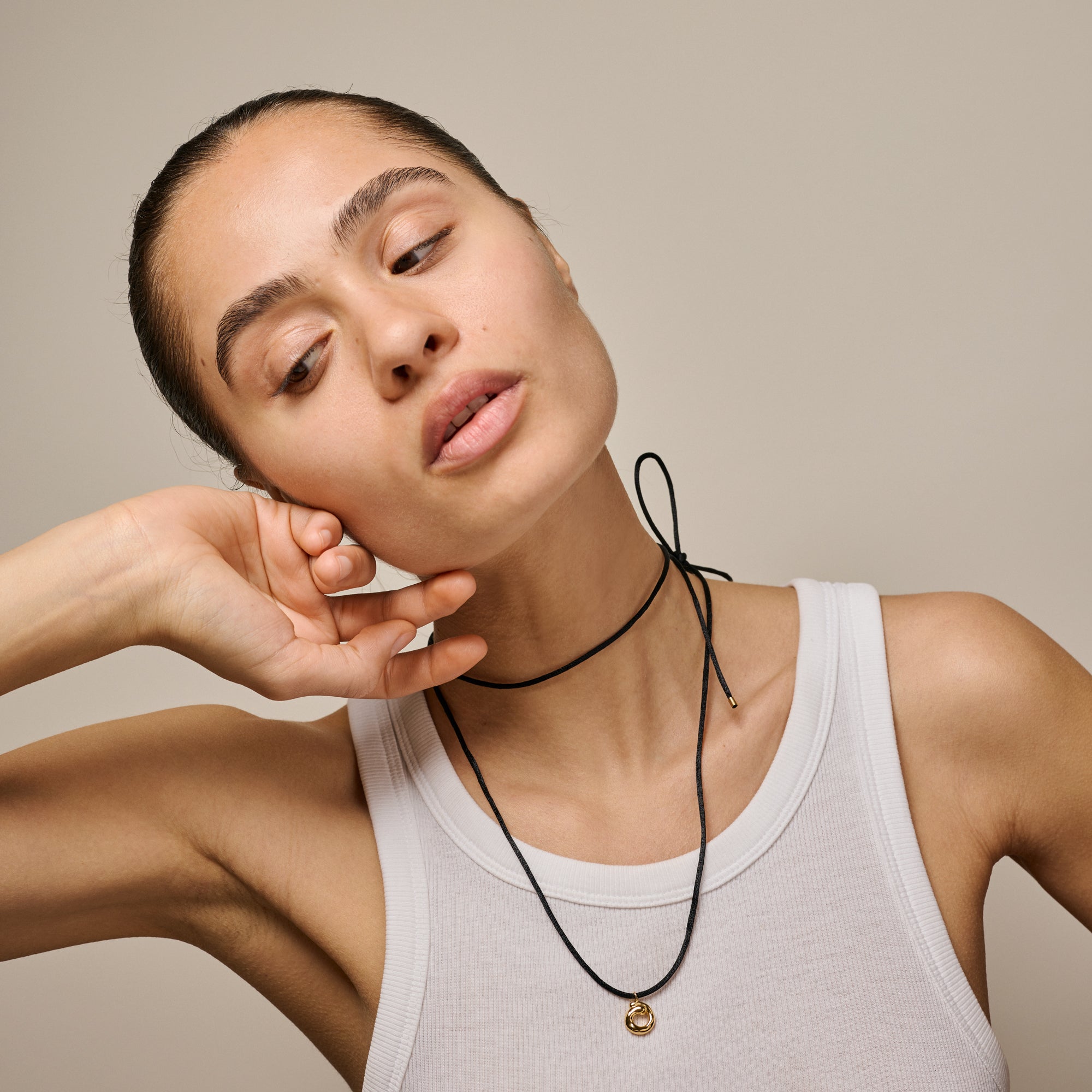 About the jewelry:The Sora Tie necklace features an exclusive and artistic pendant with an organic shape and gentle movement in its expression. The pendant comes with a black nylon cord, finished with delicate gold details for a thoughtful and stylish overall impression. You can tie the cord exactly as you wish – high on the neck for a cool choker look or lower down for a more relaxed elegance. The pendant can also be removed and used on one of your favorite chains if you prefer a more classic look – or want to add variety to your style. Sora Tie is the piece of jewelry that invites personal styling and playing with form. A modern statement with simplicity, movement, and function in perfect balance.