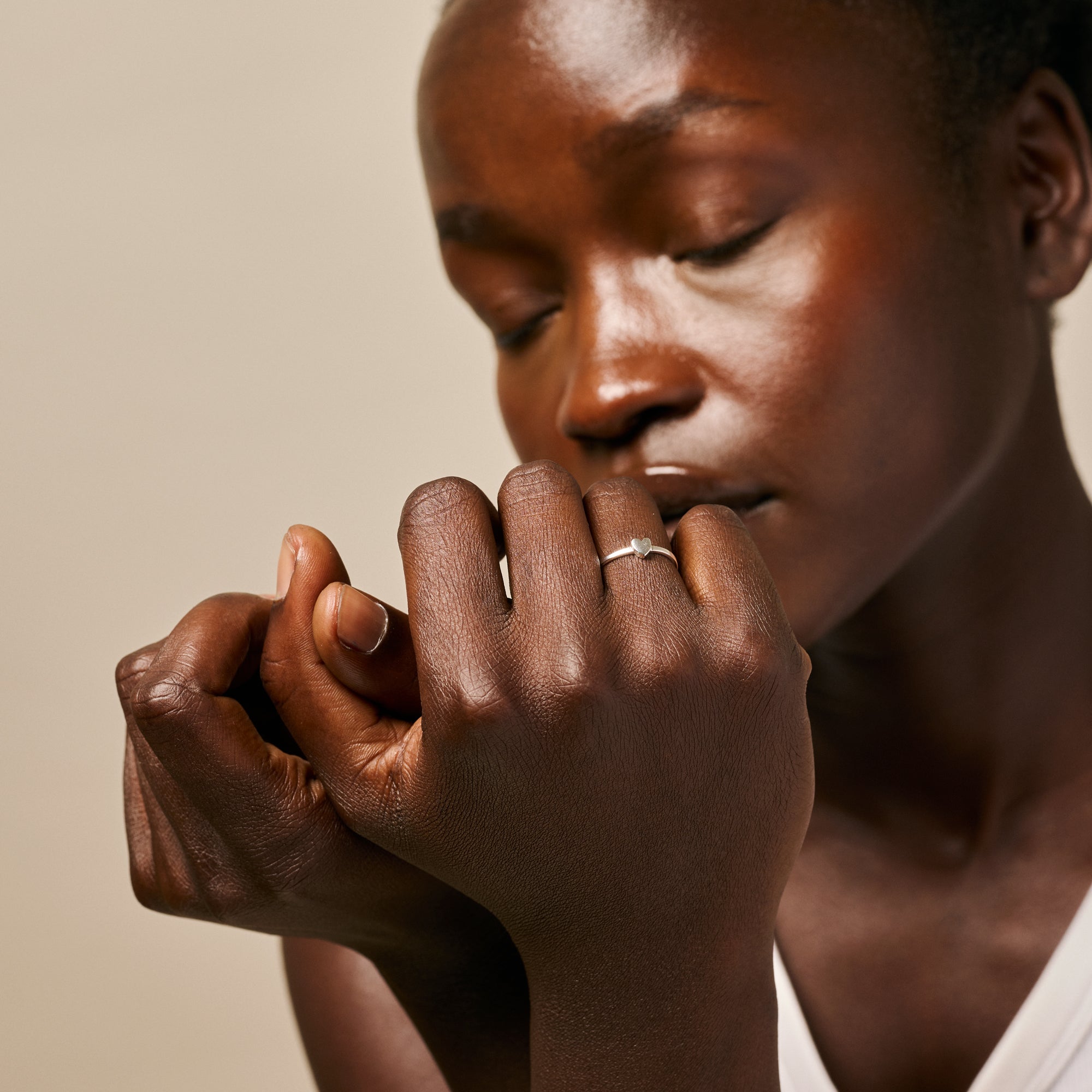 About the jewellery: The Amore ring is a sweet, understated reminder of the most important, greatest, and what we all probably talk about the most, love. The ring can be given as a gift to someone you care about, and is ideal for stacking with other meaningful rings. The ring is adjustable, with a span of four sizes, making it easy to fit to your fingers. The Amore ring in silver is more subdued and sleek in its expression, and its cool appearance pairs well with all clothing colors and skin tones.