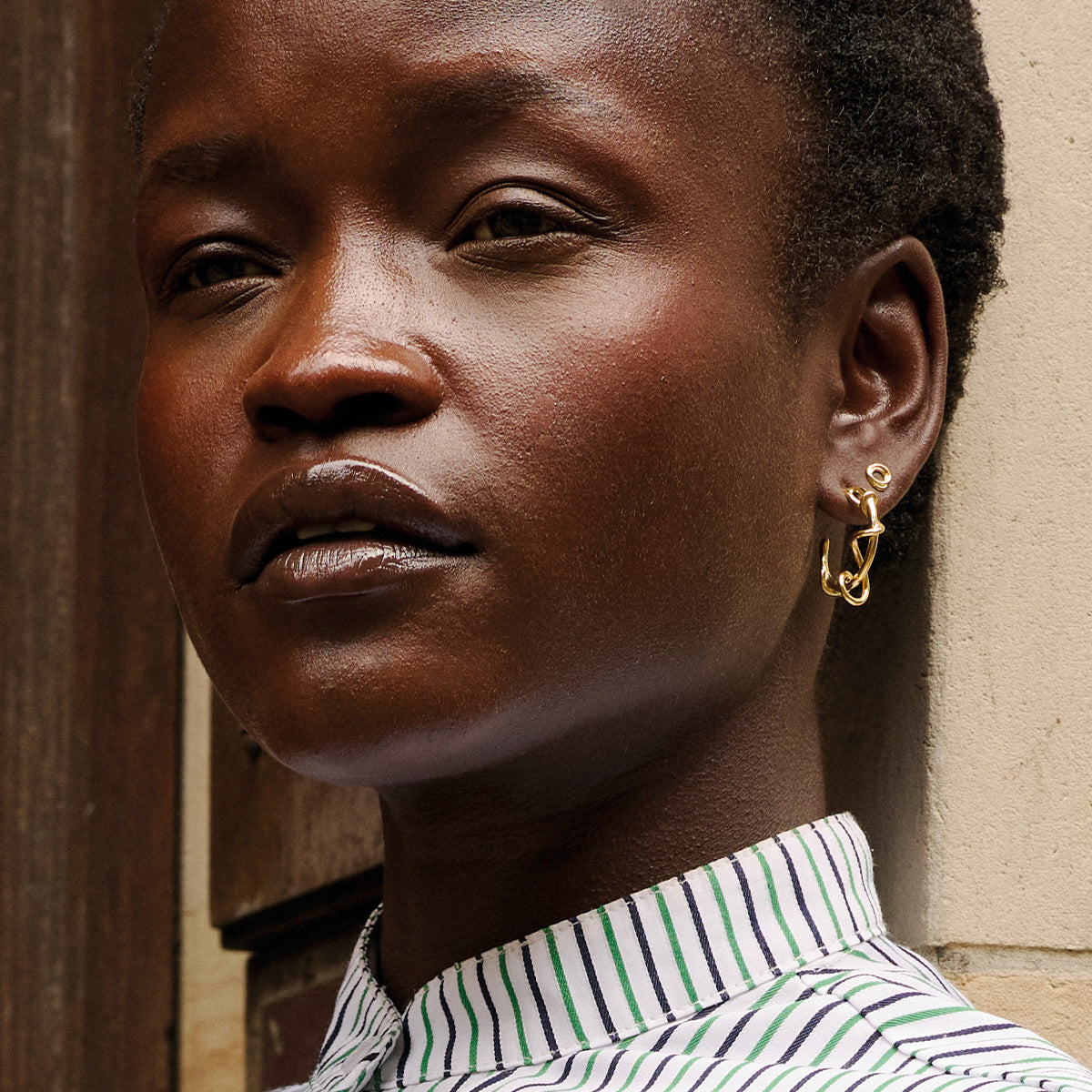 About the jewelry:Studs Bellu Mini is a small and elegant version of our popular Bellu design. The two fine, twisted rings are close together, creating a simple yet characterful small ear stud with an organic design language. The earring is perfect for those who desire a discreet piece of jewelry with personality – both on its own and as part of a mix.