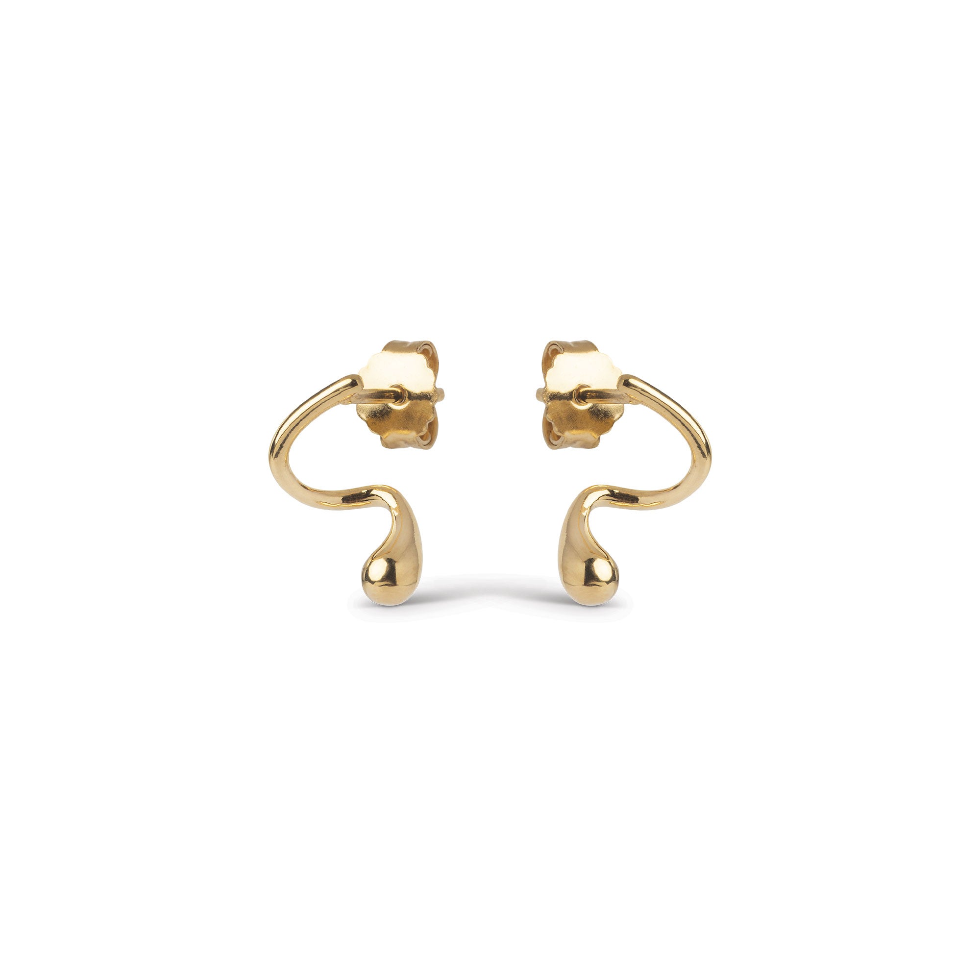 Ivi Stud in gold is something very special. With its sculptural, twisted form, it plays with perspective and placement - as if it goes around the ear - combining playful design with an elegant, shiny gold surface.